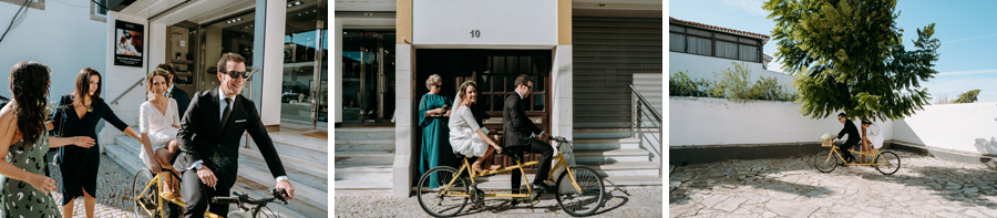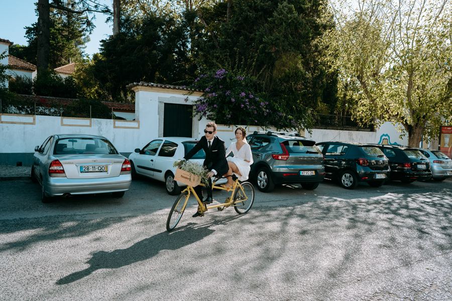 A sublinhar a criatividade deste dia, a Carolina saiu da sua preparação no Hotel Club de Azeitão com o irmão numa bicicleta de dois lugares e o seu bonito vestido foi feito em exclusivo para ela pela Dona Irene, uma costureira lisboeta. Também o estacionário ilustrado foi elaborado pela Vânia Sacramento , irmã do noivo .